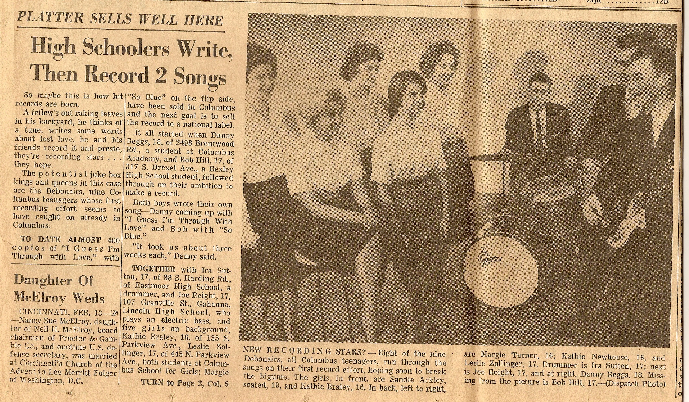 The Debonairs were one of the first self-contained 'teen rock-n-roll' bands from Columbus. They recorded a sole 45 in 1961 that got some local sales.