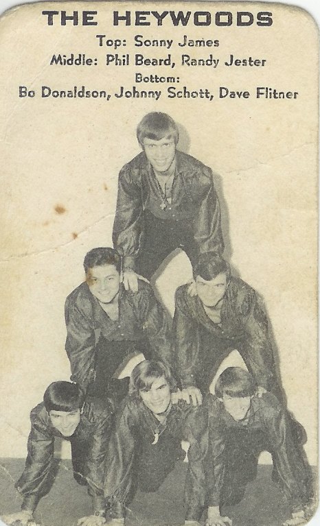 The story of the Heywoods formation turns the tables on the usual 'rock musicians defying their parents' cliche. Bo Donaldson's mother, Bea Donaldson, was the driving force behind the band from inception until their breakthrough. Her eagerness to get Bo, a keyboard player, into the band scene led her to contact Johnny Schott, who had been in the Radicals and had performed in several area musical theatre productions. Bea had known Johnny from MCing dances with the Radicals. Johnny was reluctant to get involved, but agreed to spend six months in the band as the lead singer. The band was recruited from other local bands, and included Sonny James (drums), David Flitner (bass), Randy Jester (sax), Phil Beard (guitar). With Bea's very agressive promotion, the band started to get attention. The Heywoods even employed a borrowed Monkees theme song, sung as "Hey Hey We're the Heywoods"