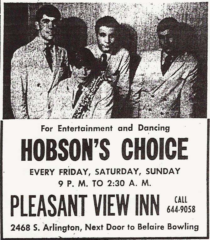 Hobson's Choice started as a four member band that played the top 40 sound. The group was started and led by Joe Macaluso. The original lineup included Joe Schmitt (drums), Tom Fitt (keyboards), Bill Lawhorn (bass). The group added Wally Frantz, a sax player who was missing a finger, and began to move in a soul/horn band direction. In May 1969 Wally placed an ad in the Akron Beacon Journal newspaper looking for musicians. Bill Lawhorn left and was replaced by Jimmy Null (who had been in the Shades), Macaluso also left. Over time they added Don Smerk on sax (replacing Wally), Gary Kekel (trumpet), Joe Tighe (trumpet), Augie Fulvimar, Greg Gorby, Joe Curtis, and Gary Grimes.