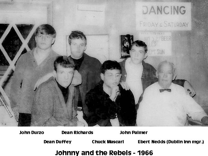 "Johnny and The Rebels started in March 1963 when Dean Richards went to a pawn shop in downtown Columbus and purchased a Kent electric guitar and amplifier. During the same week in 1963, Chuck Mascari bought his electric guitar at Western Auto. I was there and I know John Palmer was with us. John Palmer took this information, put together a set of drums and became the driving force behind Johnny and The Rebels. With Dean Duffey's purchase of a bass guitar, they were ready to play. Still the band needed some brass and a great lead singer. John Durzo was auditioned and hired on the spot. His voice and saxophone were the missing piece. Later on, the group got together and hired one of their friends to be the manager – what a lucky guy I (Phil) was."