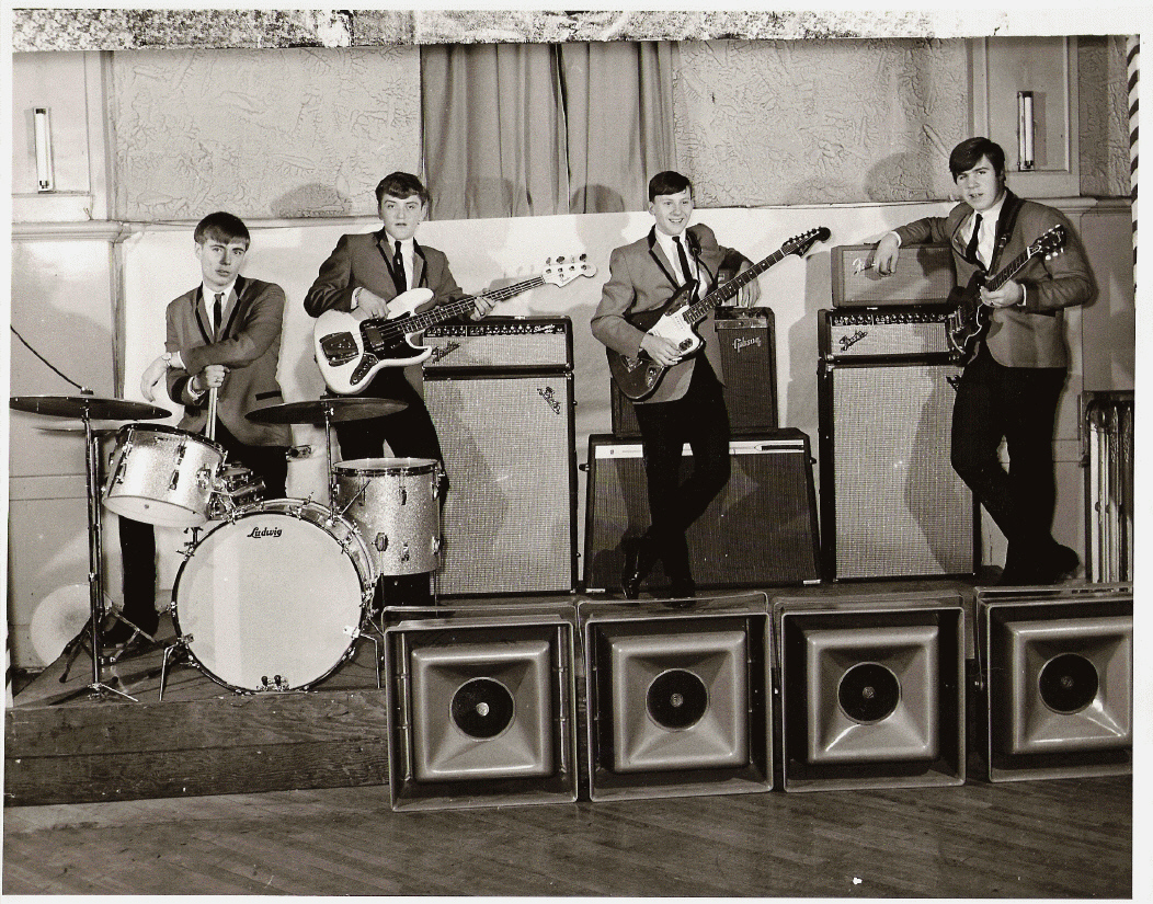The Shades were the product of an illicit gathering in the France household c.'63. Steph France was hosting a few friends and passing around a guitar when his strict father caught him in the act. Instead of discipline, his father asked him to play, was impressed, and offered to get him guitar lessons. Shortly after, Steph started a band with his Bucthel High School classmate Jim Null. Jim had a Silvertone guitar that was missing two strings - so, instant bass player! Marty Block was on sax and Mike Rankin on drums. Their first paying job was some neighborhood teen mixer where they played in a garage earning $3 apiece. On their way to a post-party pizza, they were jumped and robbed. Steph's father decided to pay for a high quality Electro-Voice PA system and the parents became the managers.